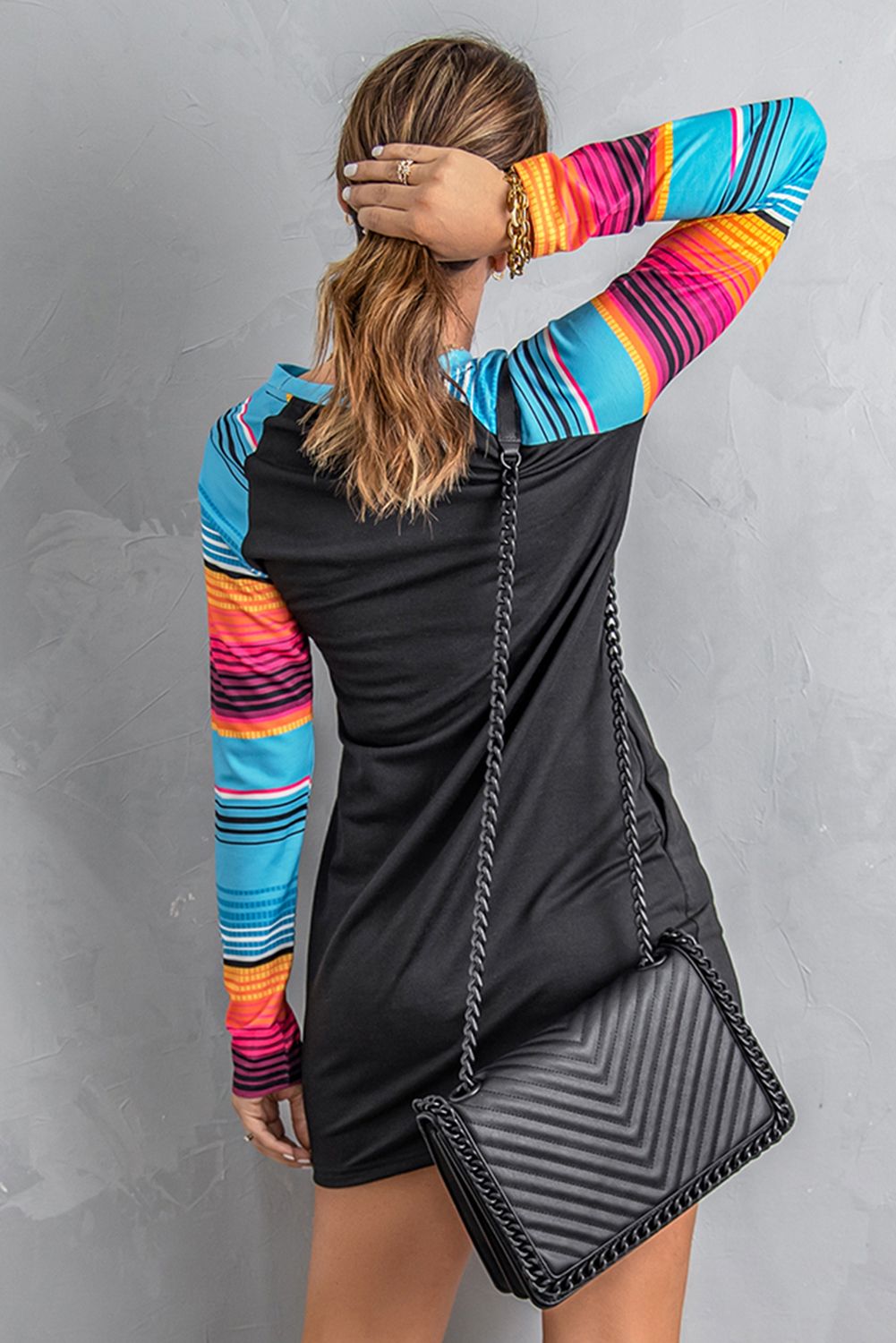 With the striped print raglan sleeve, and a girl riding horse graphic on the frontShift dress with long sleeve and crew neck can better shape your body curveMade of soft, durable and breathable material to ensure wearer's comfortable wearThe dress with above knee length can perfect show off your long and slender legsGraphic dresses wholesale are perfect for home, office, date, party, shopping