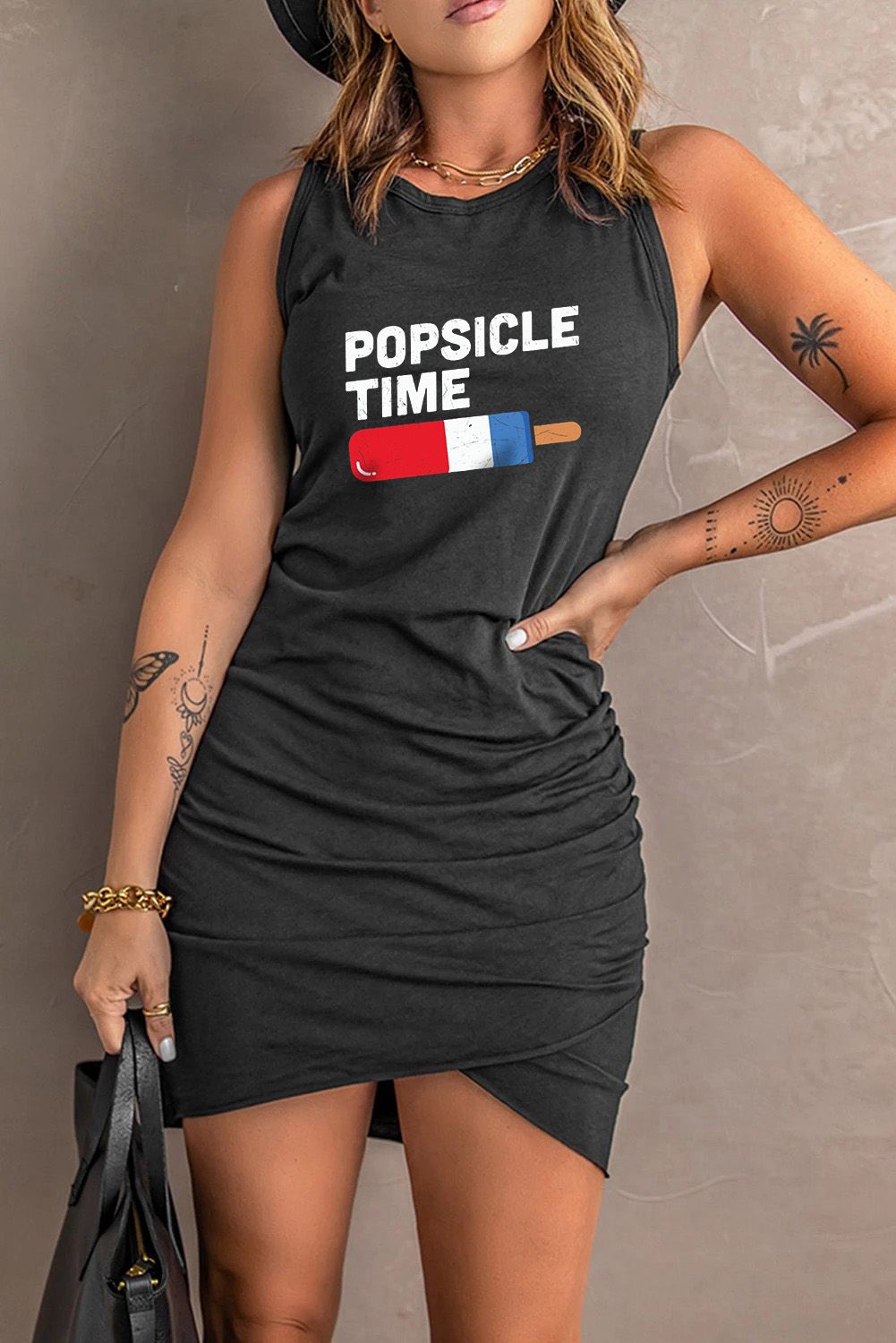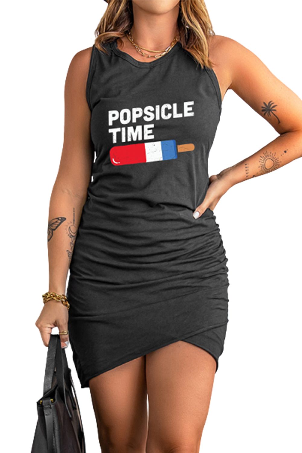 Black POPSICLE TIME Pattern Ruched Arch Hem Mini Dress