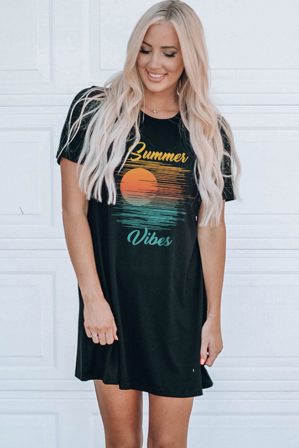Black Summer Vibes Color Block Short Sleeve Mini Dress
