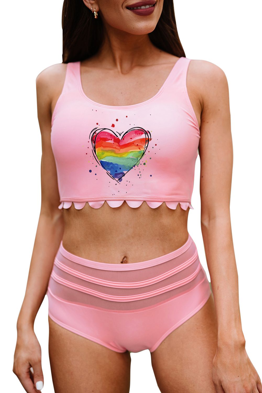 Colorful Heart Shaped Scalloped High Waist Bikini Swimwear