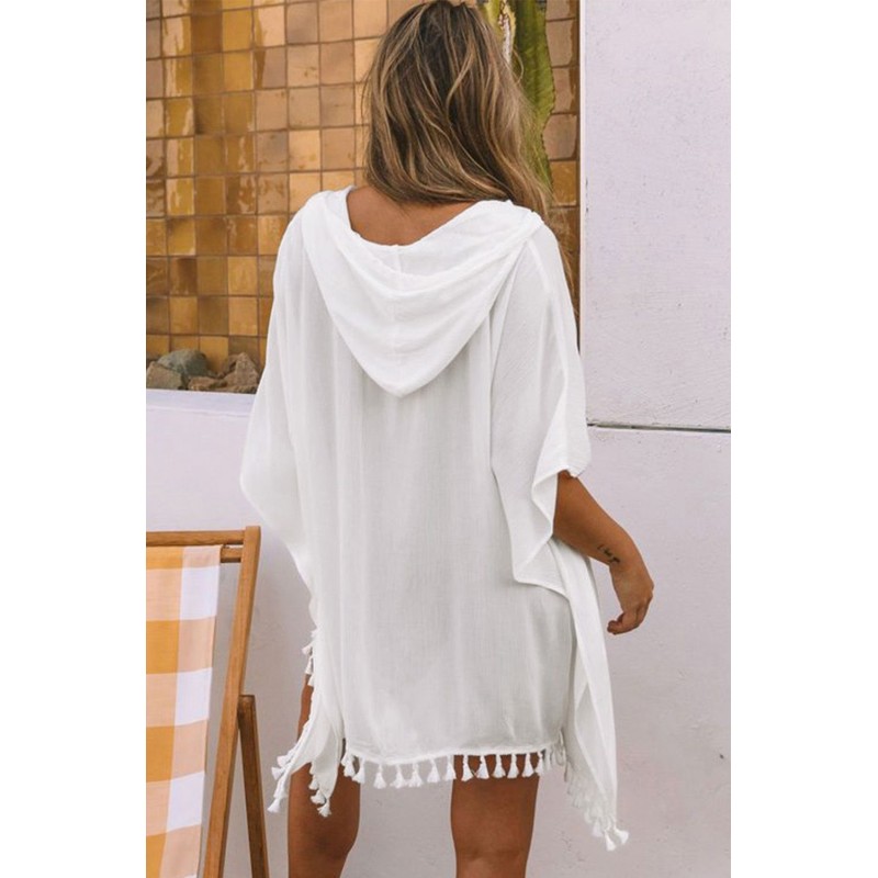 Floral Print Fringe Trim Hooded Oversized Beach Cover Up