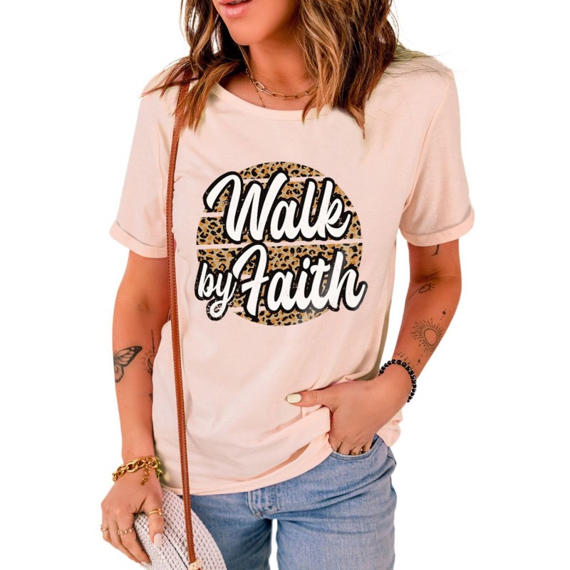 Walk By Faith Leopard Print Short Sleeve Graphic Tee