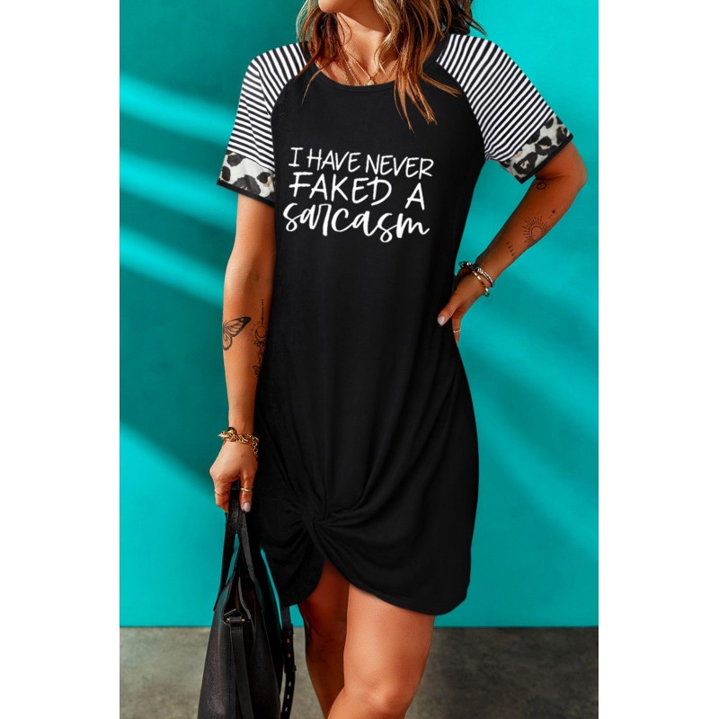 Black Letters Print Twisted Patchwork Sleeve Mini Dress