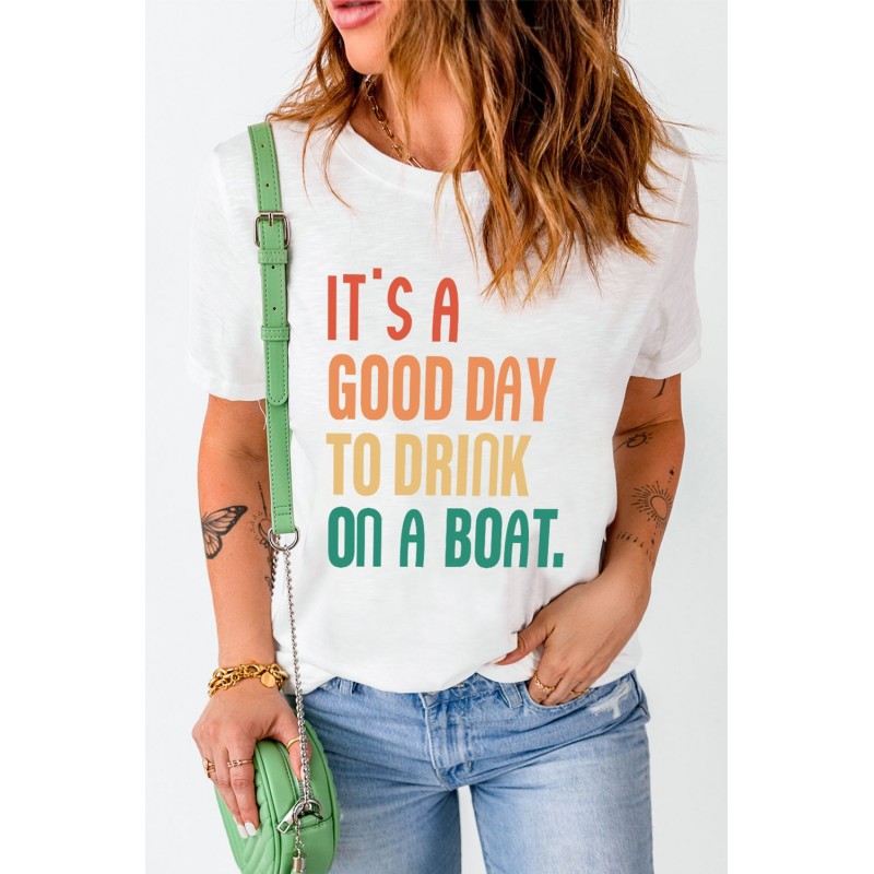 White IT'S A GOOD DAY TO DRINK ON A BOAT Letters T Shirt